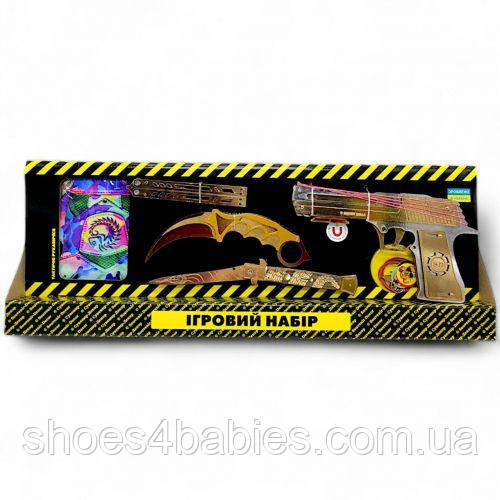 Дитячий ігровий набір "BIG BOX" — ідеальне рішення для прихильників активних ігор і безпечних баталій! Особливо набір сподобається фанатам ігор CS:GO і Counter-Strike 2. Комплект містить: дерев'яний резинкостер із гумками, тренувальні сувенірні ножі, тактичні рукавички та стильний брелок. *Расветка може відрізнятися від зазначеної на фото.